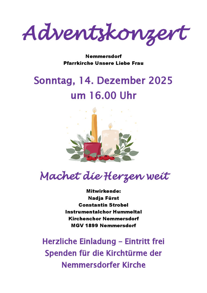 Am 5. Oktober fand das Erntedankkonzert mit Jana Florence in der Nemmersdorfer Kirche statt. Die Konzerbesucher genossen die Musik des Duos. An diesem Abend war für jeden das richtige Stück dabei. Mit Live-Musik, mit Gitarre und Gesang lässt sich der Sonntag würdig feiern.