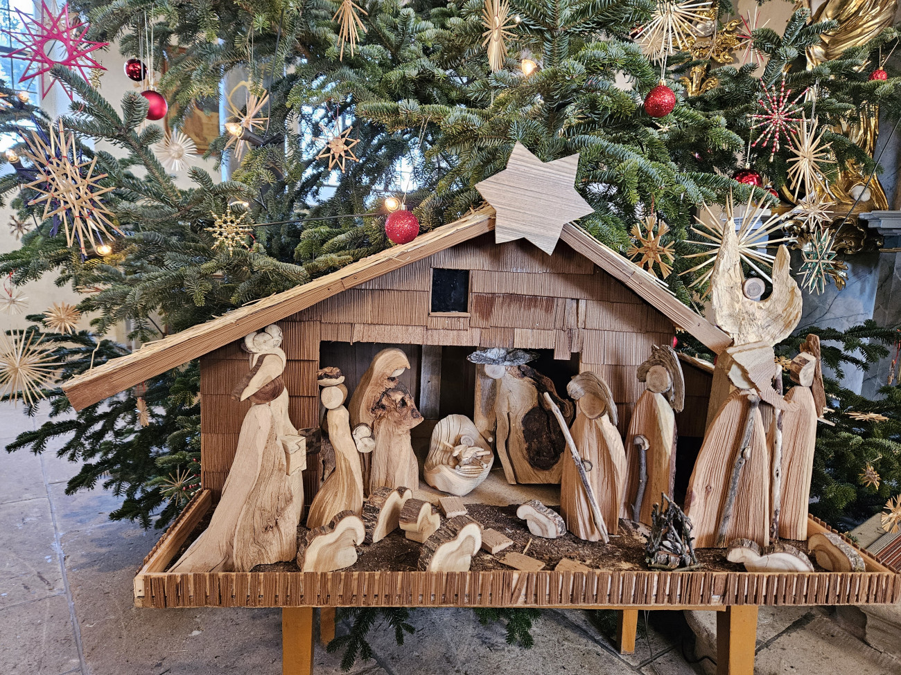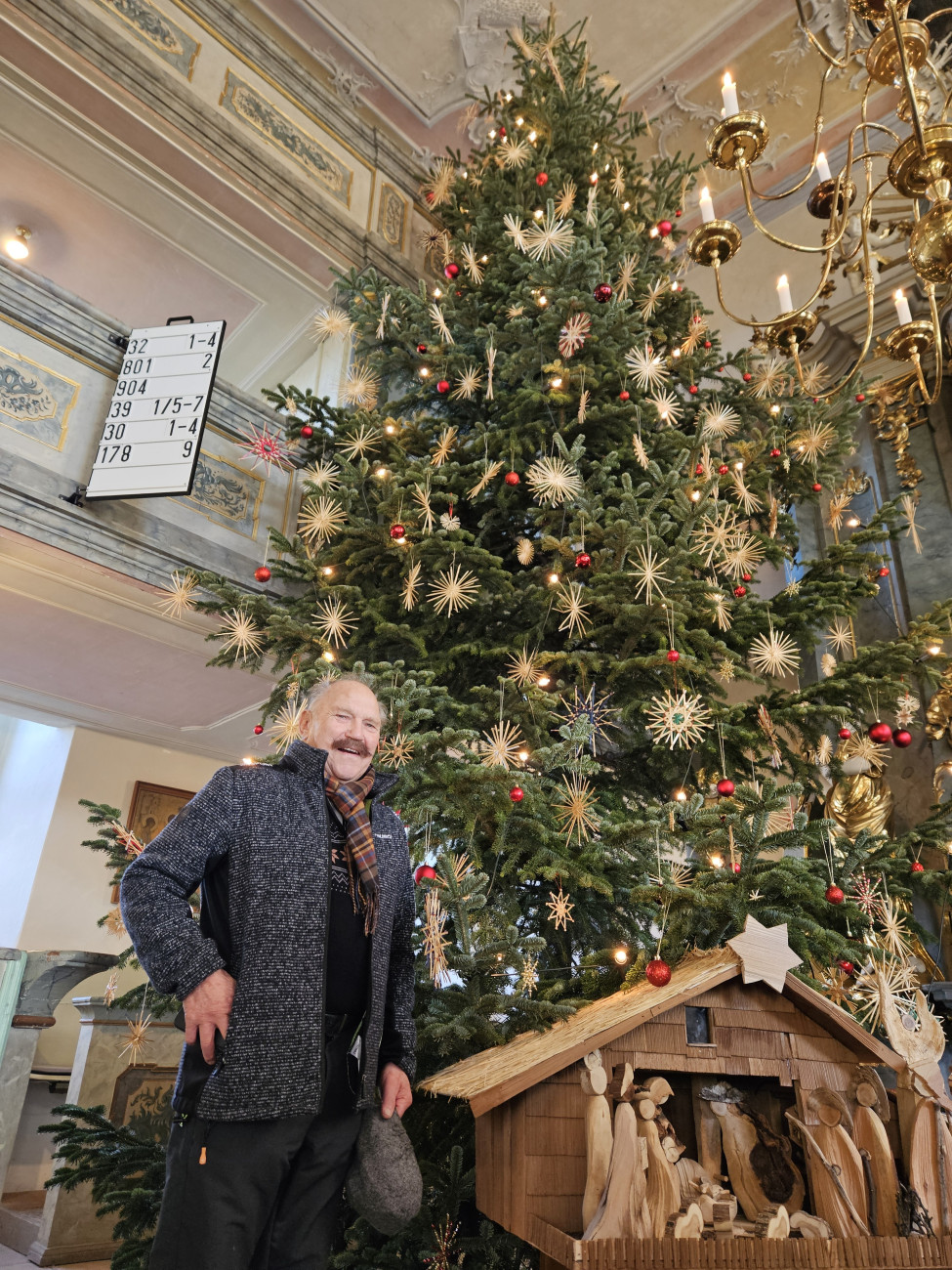 "So groß war der Baum noch nie.", meinten die Mesnerinnen. Nur ca. 5cm sind noch Platz bis zur Decke.